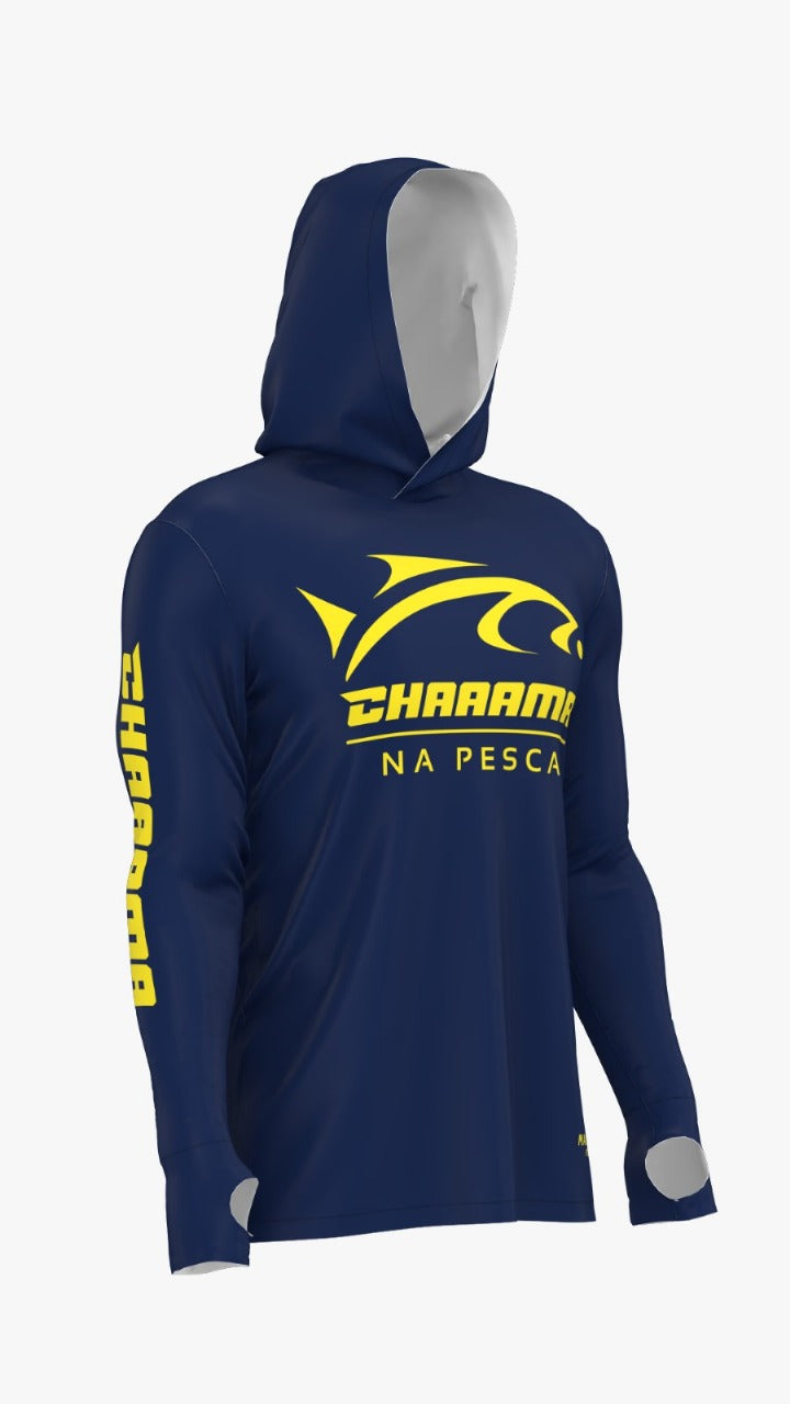 Confeccionada com tecido tecnológico UV 50+, Com proteção 360° nas mãos.